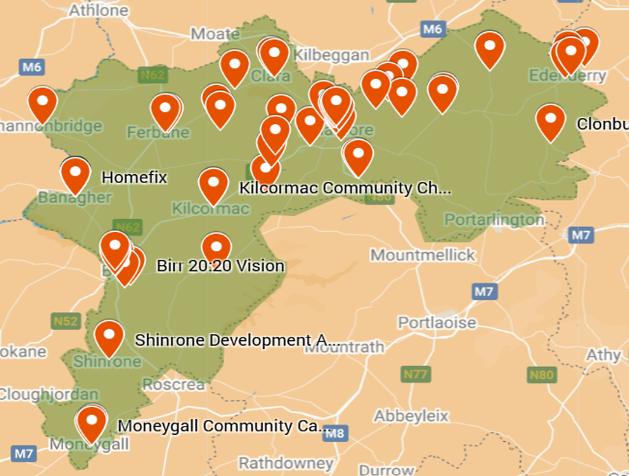 - A Visual Map of Social Enterprises in Offaly has been created for the purpose of offering data and location insights on active organisations, helping to identify where support and mentoring may have the greatest impact.