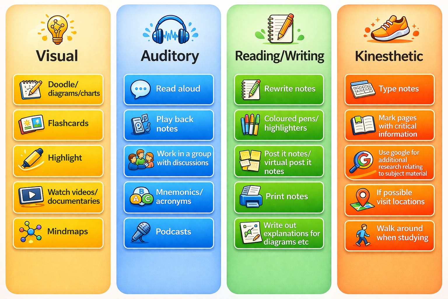 After completing the learning styles test, you can use your results to choose study strategies that match how you learn best. For example, you might use diagrams, discussions, rewriting notes, or hands-on activities depending on your style. Using these strategies can help you understand and remember information more effectively when preparing for tests.