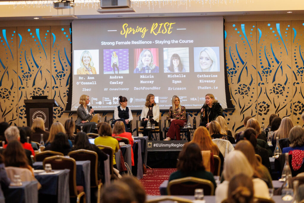 Led by Dr Ann O’Connell (Ibec), joined by Catherine Kiveney (TheHen.ie), Andrea Cawley (EY Consultancy), Máirín Murray (TechFoundHer) and Michelle Egan (Ericsson Network Management), the first panel focused on strong female resilience, staying the course through challenge, and navigating evolving career paths. Speakers shared honest insights on the importance of determination, building diverse and supportive networks, and recognising when to pivot as new opportunities emerge.