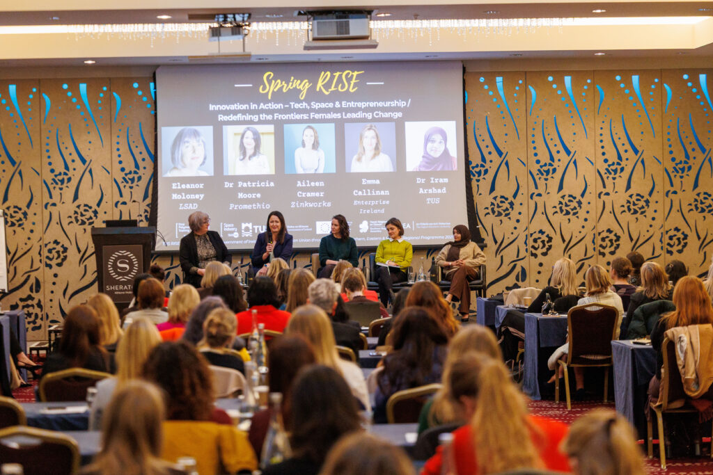 The second SpringRISE panel, moderated by Eleanor Moloney, brought together Dr Patricia Moore (Promethio), Aileen Cramer (Zincworks), Emma Callinan (Enterprise Ireland) and Dr Iram Arshad (TUS), explored the value of embracing vulnerability, taking calculated risks, learning from failure, and fostering a culture of lifelong education. Panellists also highlighted the need to incentivise entrepreneurship and innovation to support the next generation of leaders.