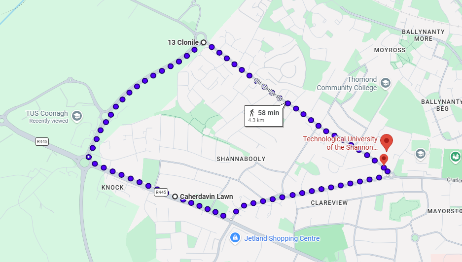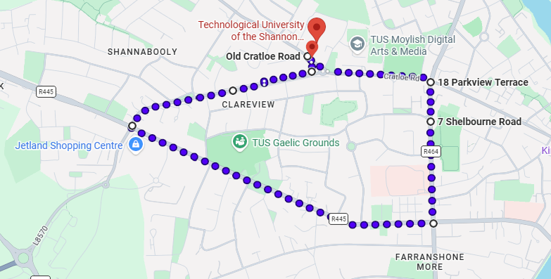 TUS Moylish Campus is located approximately a 10-minute walk from the nearest student accommodations and a 20-minute walk from the city centre.