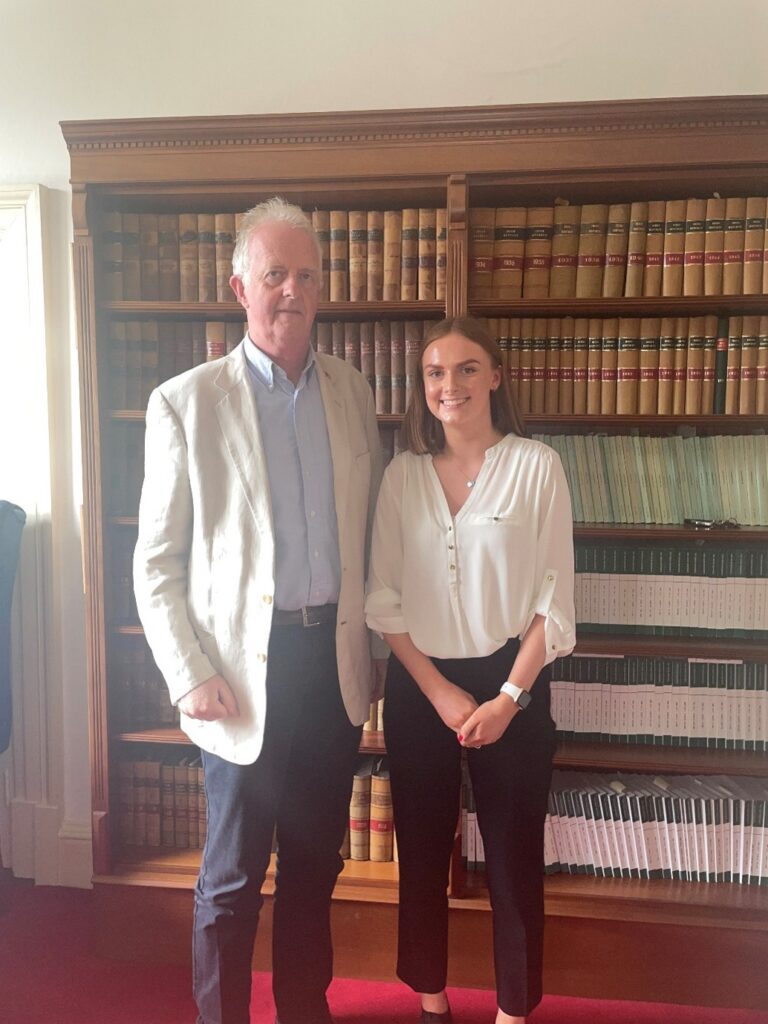 Throughout my internship, I was taught a lot by Charleton J. Through spending time in his chambers, watching him draft judgments on Supreme Court cases relating to Patrick Quirke, “Mr Moonlight”. I was shown how to draft judgments, speeches and talks. I enjoyed learning these things, including being shown a very detailed book on crime scenes and how to process crime scenes, from evaluating the scene to creating casts of shoeprints left behind. It was great to have the chance to have exciting conversations about past and current criminal cases.  I was shown how to read a judgment for all the details effectively. I was very grateful I could sit in on several Supreme Court Cases and see the process and vast amount of documents that need to be prepared by judges before they even sit to hear the case.
